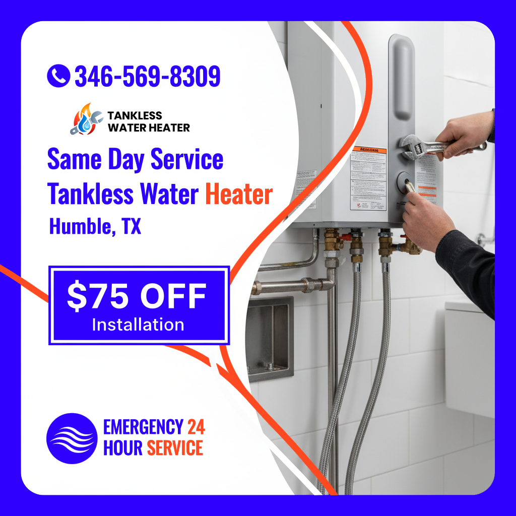 Tankless Water Heater Humble TX is the go-to team for homeowners and companies who want steady hot water, less energy waste and more space at home. Traditional tanks run nonstop and cost more on utility bills but tankless systems heat water only when you turn on the tap. That means faster hot water and lower monthly bills. With Tankless Water Heater Humble TX, you get skilled technicians who know local building codes, gas line requirements and safety rules. We provide free estimates, flexible scheduling and honest pricing before any job starts. Clients also trust Tankless Water Heater Humble TX because we are insured, background checked and work with major brands like Rinnai, Navien and Rheem.